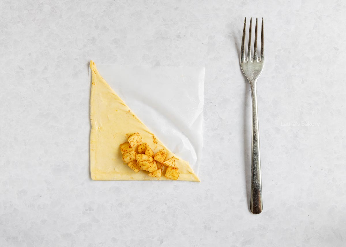 Bij mini appelflapjes is de verhouding tussen deeg en appelvulling net even anders. Er is wat minder ruimte in zo’n klein flapje voor de appelvulling, dus alle bladerdeegfans kunnen hun hart ophalen.