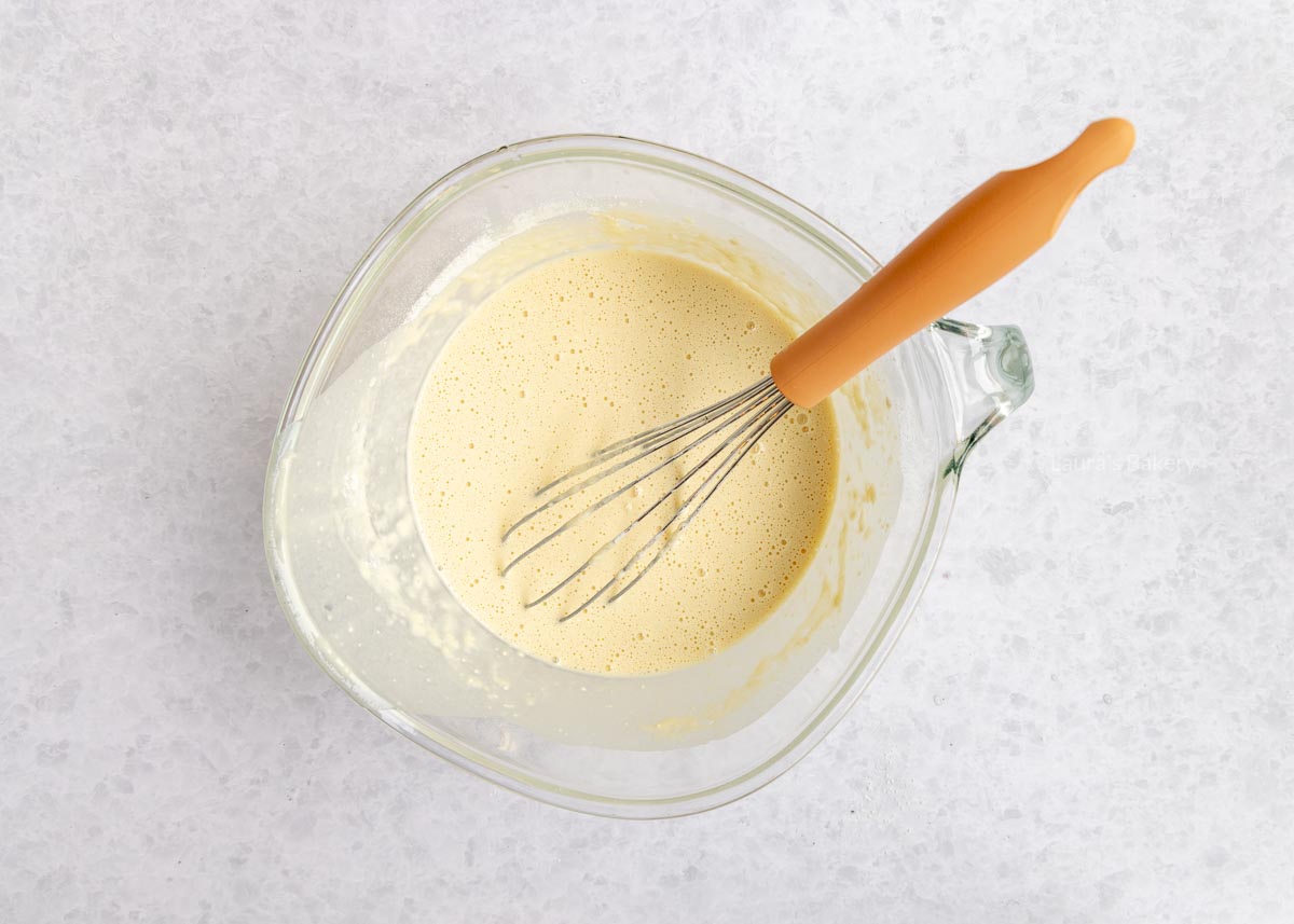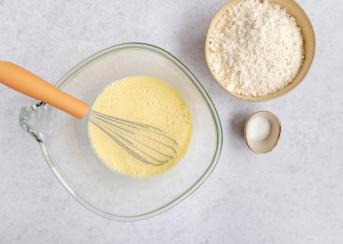 Dat kan in principe niet gebeuren met onderstaand recept, tenzij je de meelsoort hebt veranderd. Gelukkig is het makkelijk op te lossen door steeds een scheutje meer melk door het beslag te mengen, tot je de goede consistentie hebt.