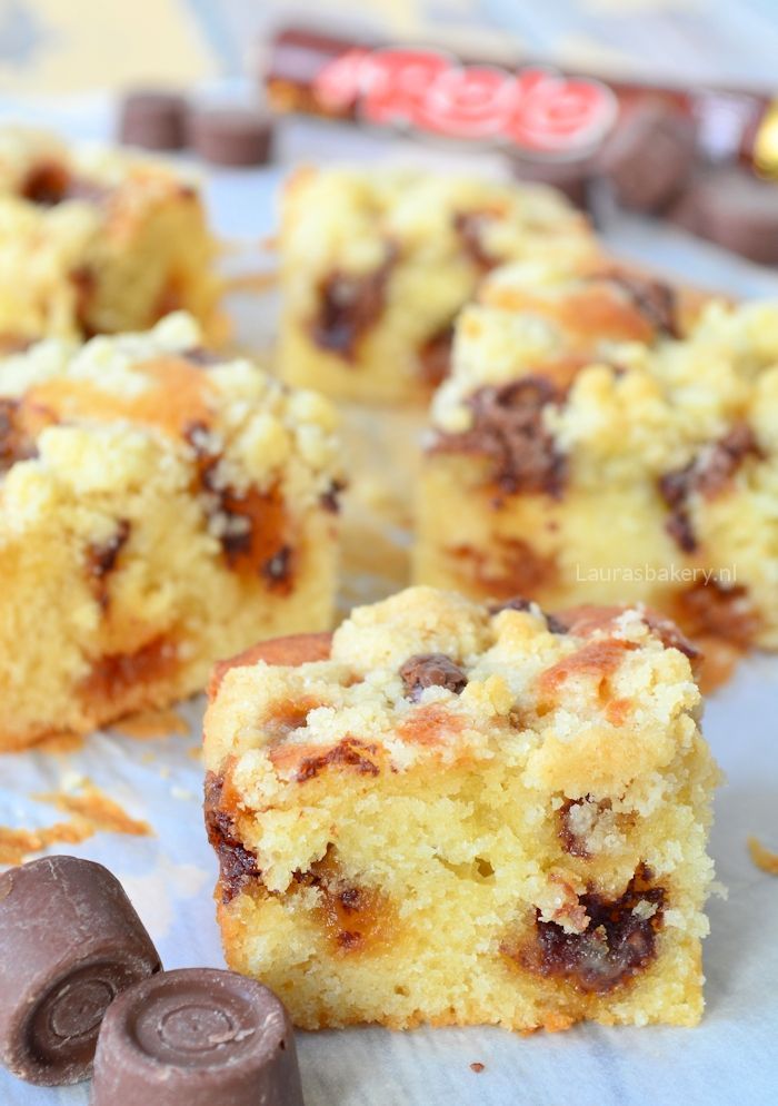 Ik heb deze crumble cake al meerdere keren gemaakt. Met rolo,heerlijk.