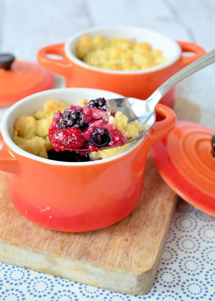 Hallo Laura, Ik zie op de foto dat je de crumble in zo’n leuk klein keteltje presenteert.