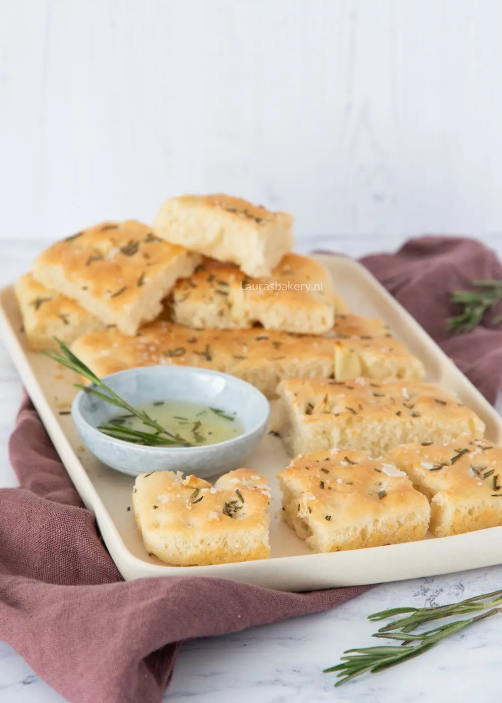 Dit brood maakte ik alweer een hele tijd geleden, een paar dagen nadat ik alle sauzen, dips en spreads voor mijn nieuwe boek maakte. Ik kan je dus vertellen dat deze rozemarijn-zeezout focaccia uitstekend te combineren is met allerlei lekkere spreads. Mijn boek is nog niet uit, dus neem vooral even een kijkje tussen de sauzen en dips hier op de site. De meeste passen ook prima bij een barbecue, samen met deze focaccia dus. Want daar draaien de vrijdagen om deze zomer: barbecue bijgerechten. Dat kan zoals nu een lekker brood zijn, maar we hebben nog veel meer lekkers in de aanbieding dat deze zomer allemaal online gaat komen. Wie gaat er alvast aan de slag met deze focaccia?